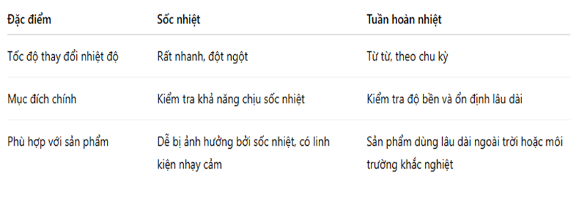 Khác với sốc nhiệt, thử nghiệm tuần hoàn nhiệt kiểm tra sản phẩm dưới sự thay đổi nhiệt độ một cách từ từ và theo chu kỳ.